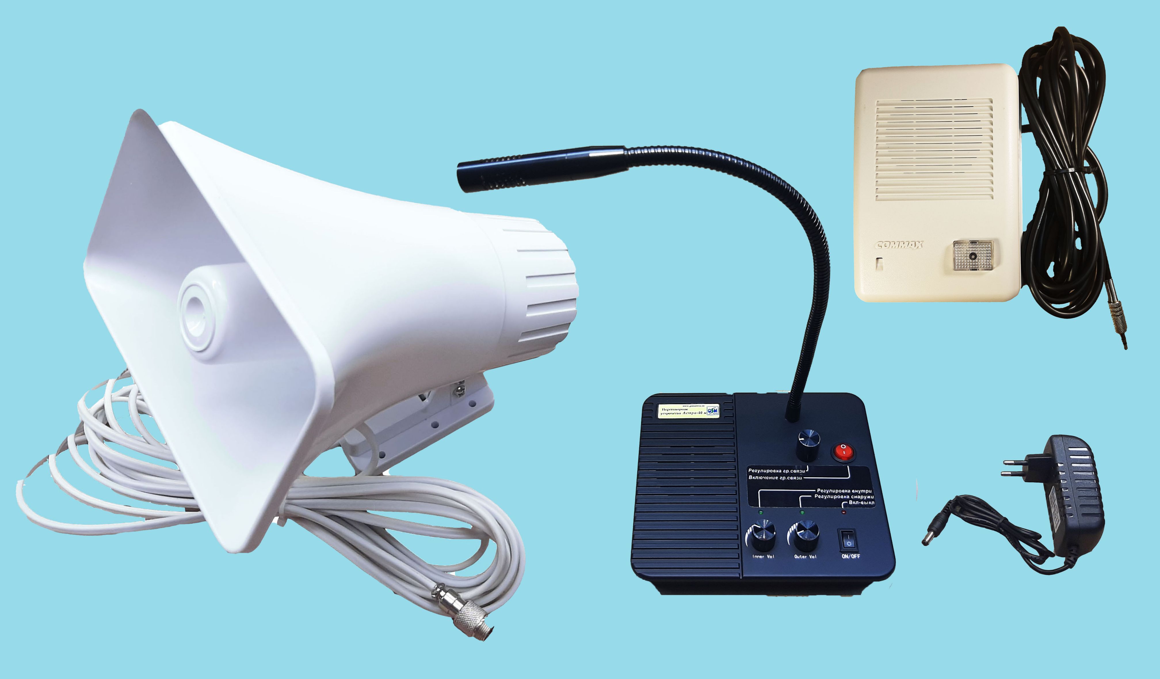 ,громкоговоритель (АБС пластик ,40 Вт) с кабелем и разъемом, блок питания ,соединительные провода)